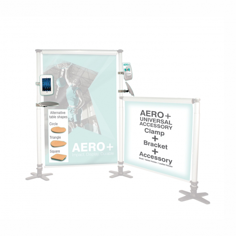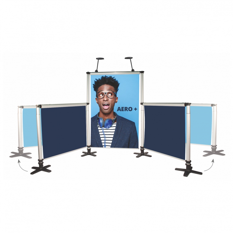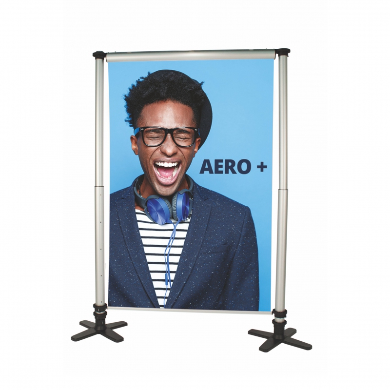 Aero + je skutečně inovativní systém bannerů s modulárním kazetovým válecem, který lze sestavit na nekonečně mnoho způsobů. Jádrový systém se skládá ze dvou nastavitelných sloupků a kazety. K rozšíření systému lze přidat další doplňky a bannery. Bannerové kazety lze namontovat do osmi bodů. Banner a sloupky lze nastavit pro 11 různých grafických konfigurací a kolejnice jsou k dispozici ve třech různých šířkách.