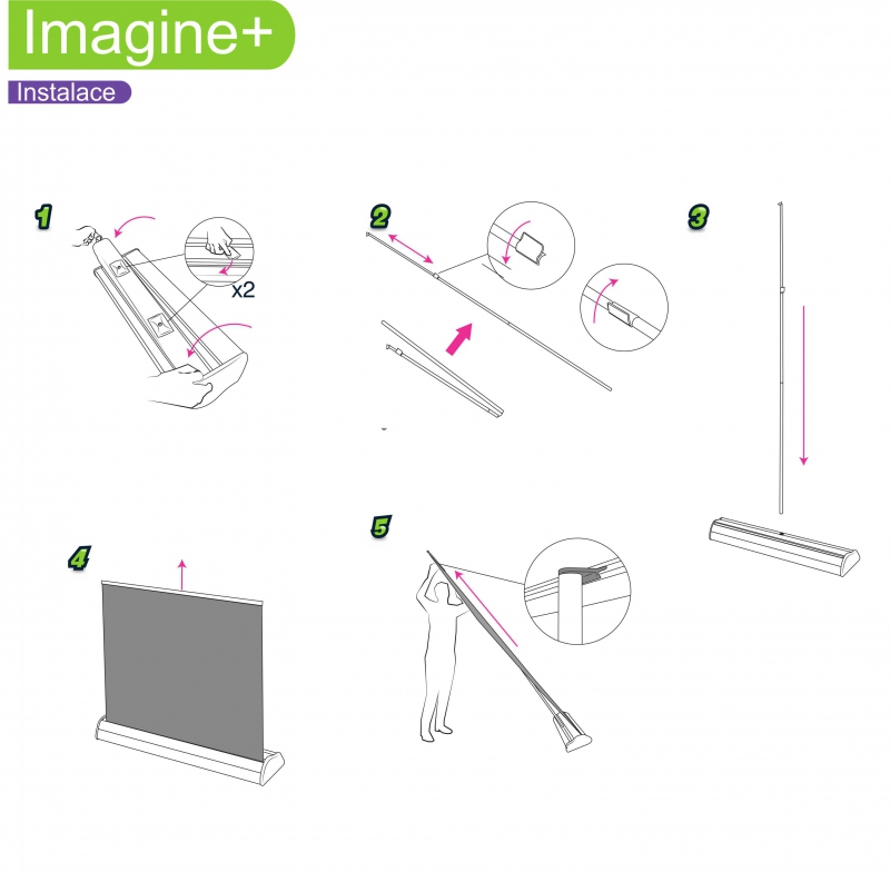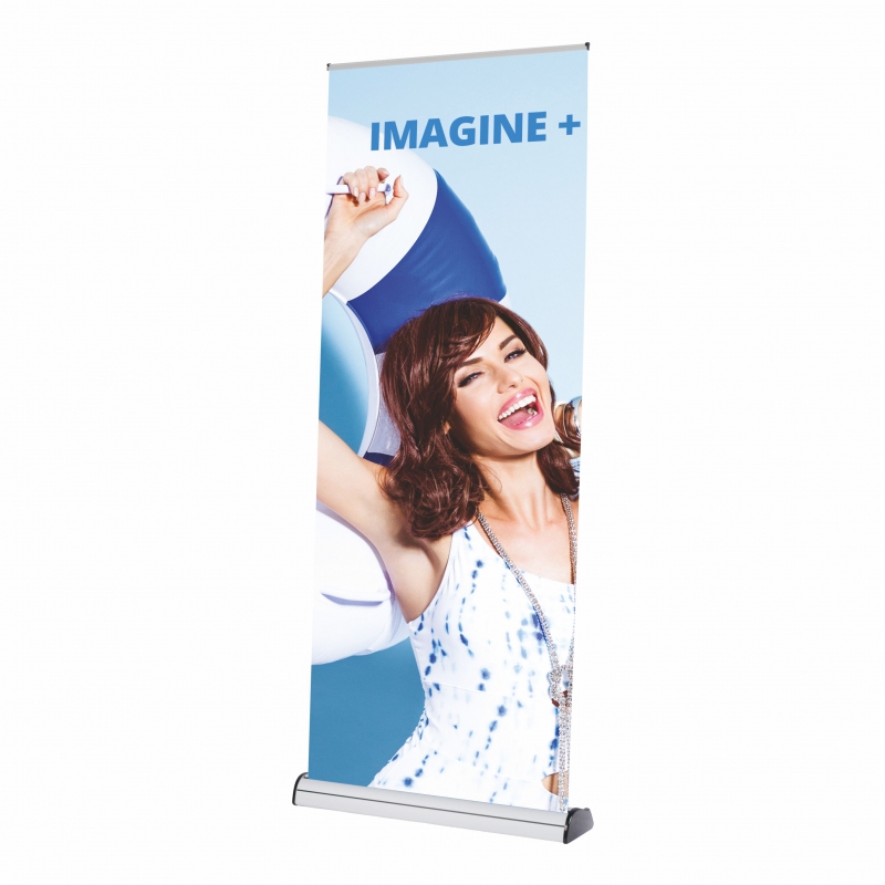 Robustní konstrukce, elegantní design, snadná manipulace. Roll Up banner Imagine+ vždy dokonale reprezentuje vaši firmu. Na temto prémiový banner se vztahuje doživotní záruka.